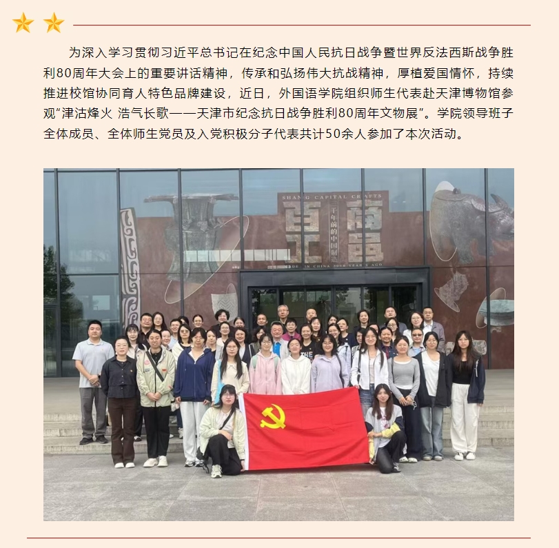 深化校馆共建,砥砺爱国初心——外国语学院组织师生党员代表赴天津博物馆参观
