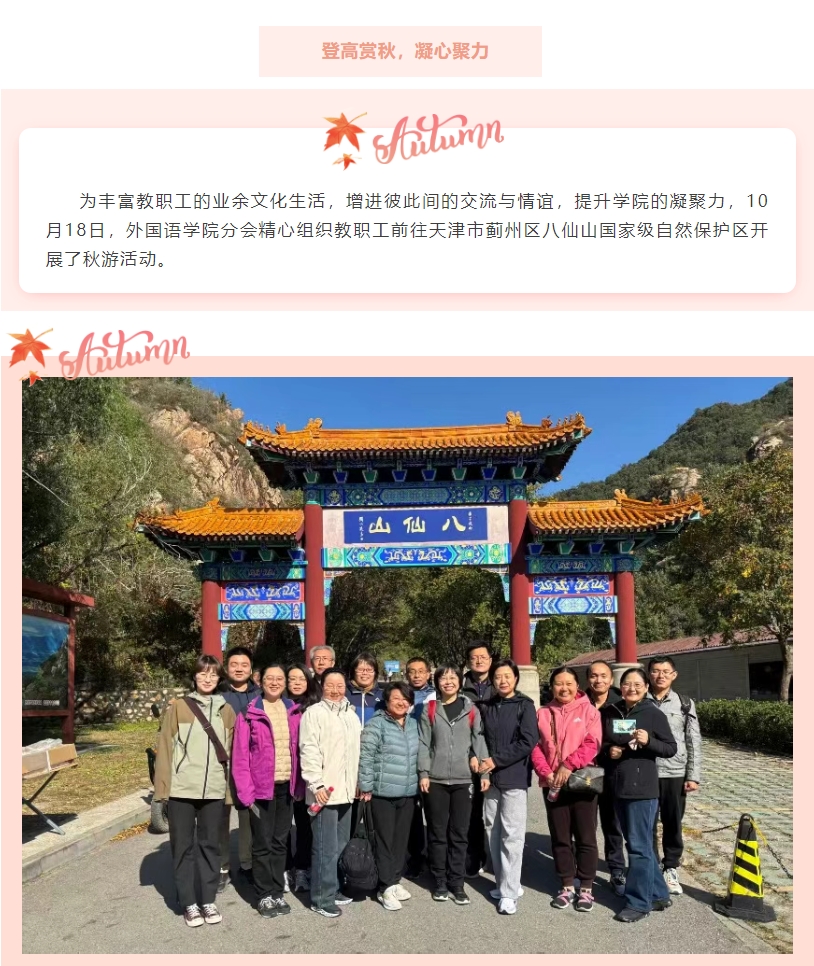 登高赏秋,凝心聚力:外国语学院分会组织八仙山秋游活动