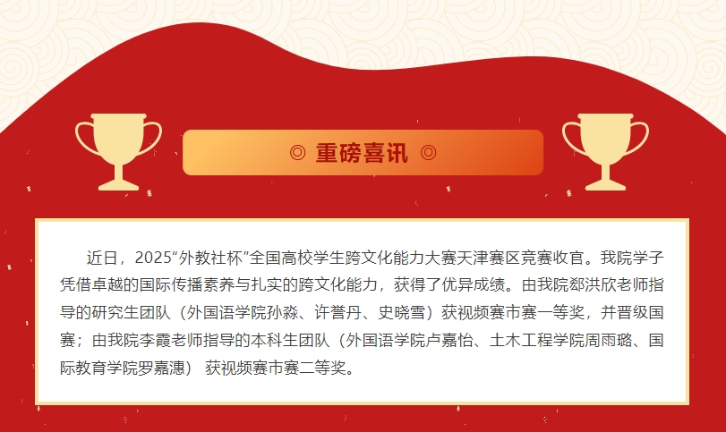 喜报我院学子在2025“外教社杯”全国高校学生跨文化能力大赛(视频赛)天津赛区中斩获佳绩