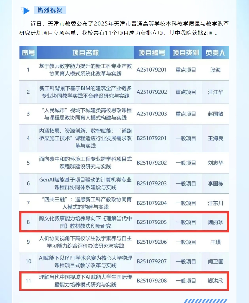 外国语学校获批2项天津市普通高等学校本科教学质量与教学改革研究计划项目