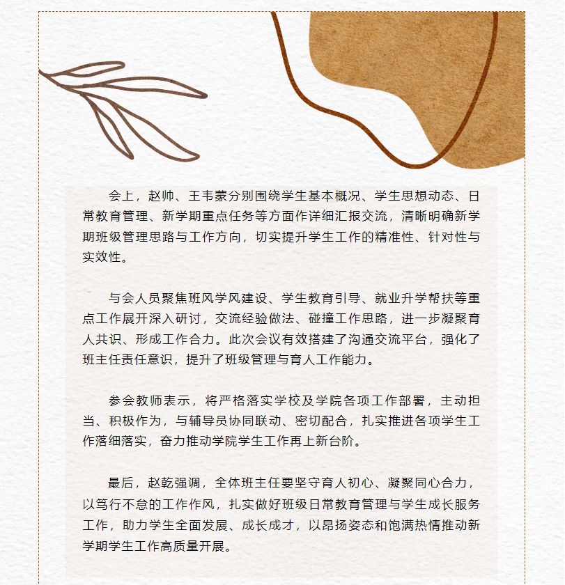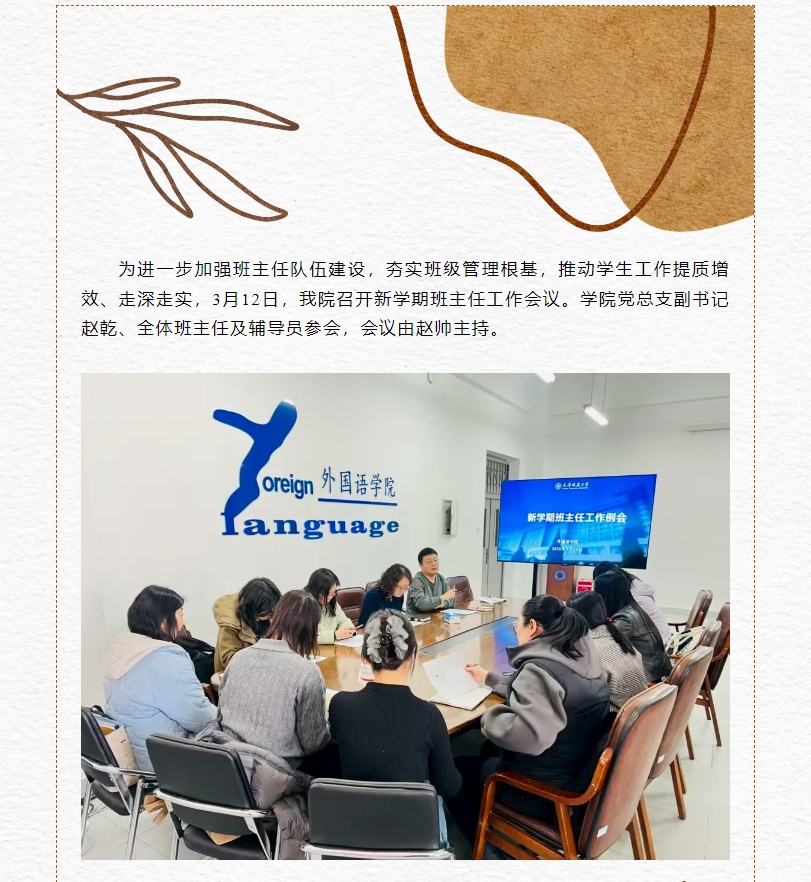 凝心聚力强队伍 笃行实干促育人——我院召开新学期班主任工作会议
