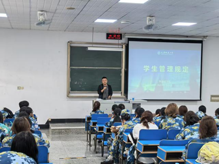 为使2025级新同学能更好地适应大学新生活,更加详细了解学校的制度规范,明确校规校纪,培养良好的学习习惯,我院于2025年9月26日中午在东配楼105开展学生管理规定及假期安全教育。学生工作办公室全体成员、2025级全体新生参会。