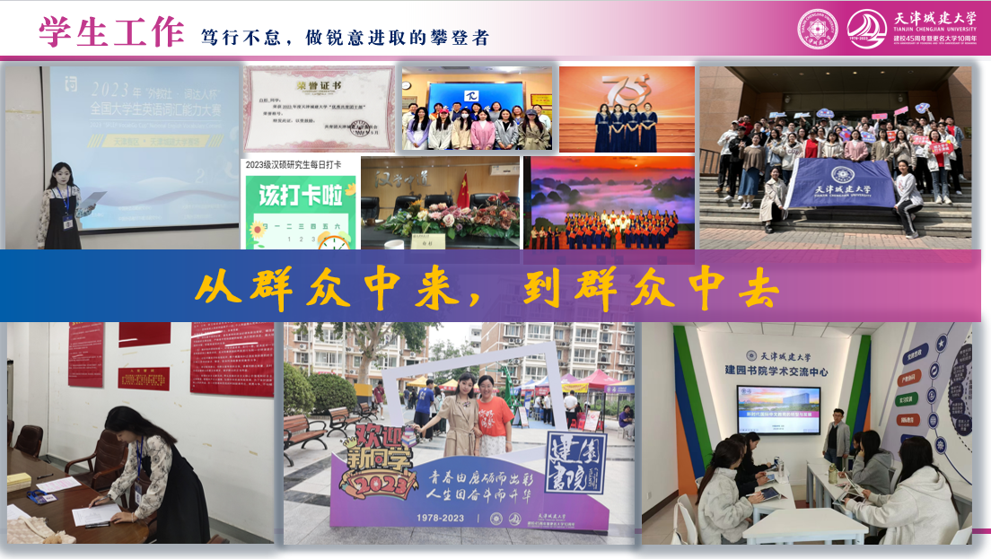 作为专硕研究生阶段的重要实习,她在多个学期积极参与实习任务,就如何开展个性化教学、提高教学质量等方面进行了研究,并面向来自6个国家的20余名留学生独立完成全英授课“Experience Tianjin”,总累计课时量达30余节。她也在这些实践的过程中,不断夯实专业本领。