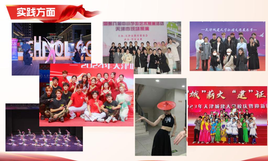 作为舞蹈团负责人,她带领团内成员参加2024年天津市大学生文艺展演比赛,获三等奖两次,二等奖一次,参与校庆晚会、迎新晚会、天开园展演等校内各大演出,组织排练演出,深耕美育实践,助力丰富校园生活,展现城大风采。